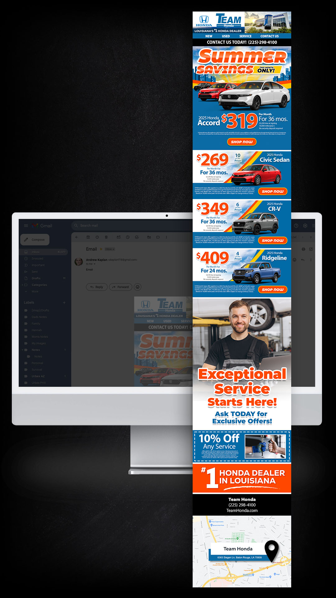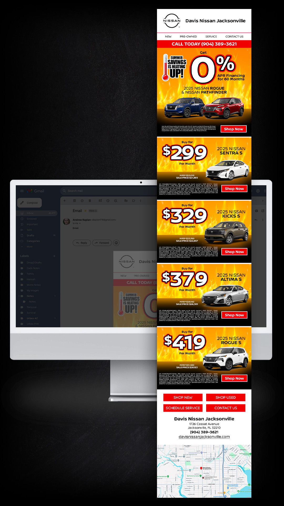 In my automotive email campaigns, I strategically present a diverse array of offers, ensuring there’s something for everyone. Each email starts strong with a compelling offer, followed by additional enticing options. Throughout the content, strategically placed call-to-action buttons offer consumers multiple opportunities to learn more about our vehicles. These emails not only captivate readers from the moment they’re opened but also inspire them to explore further on a dealership’s website if they don’t immediately find what they’re seeking in the email.